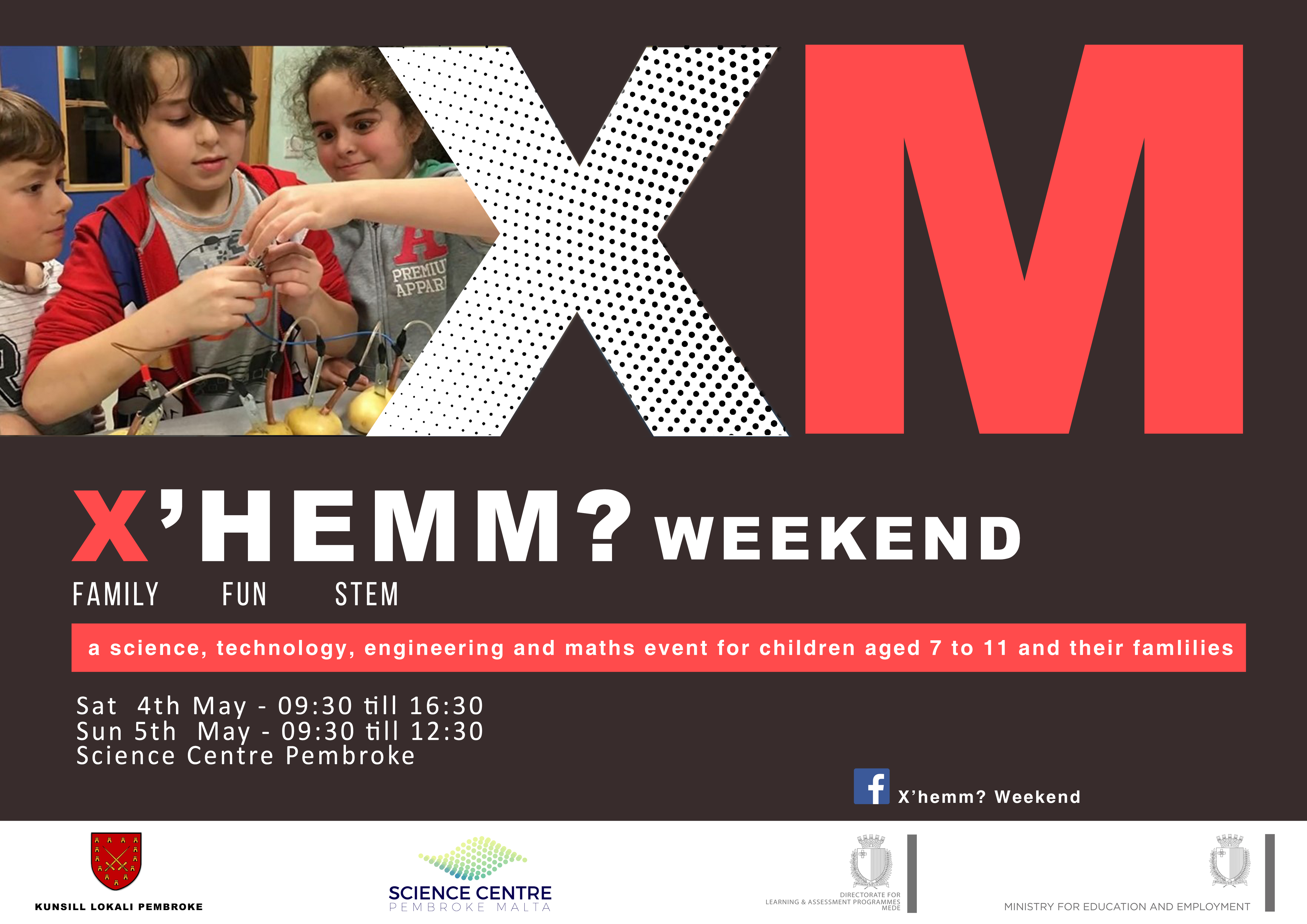 X’hemM? Weekend is a weekend event targeting primary age students (7 to 11 years) and their parents/guardians. The aim of X’hemM? Weekend is to provide participants the opportunity to engage in hands-on workshops related to Science, Mathematics and Technology.